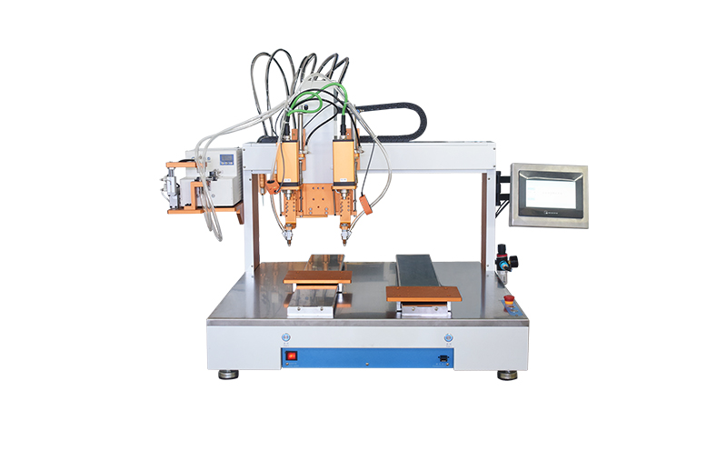 6,雙電批同時(shí)工作鎖付設(shè)備效率高,速度快,是普通螺絲機(jī)的雙倍速度,占地面積小。